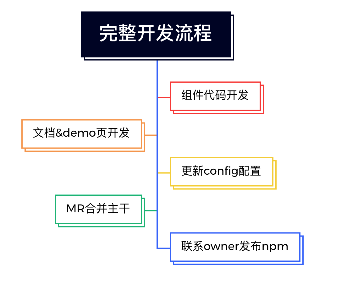 下图为组件完整的开发流程,组件维护更新时,可能只需要部分流程即可。
